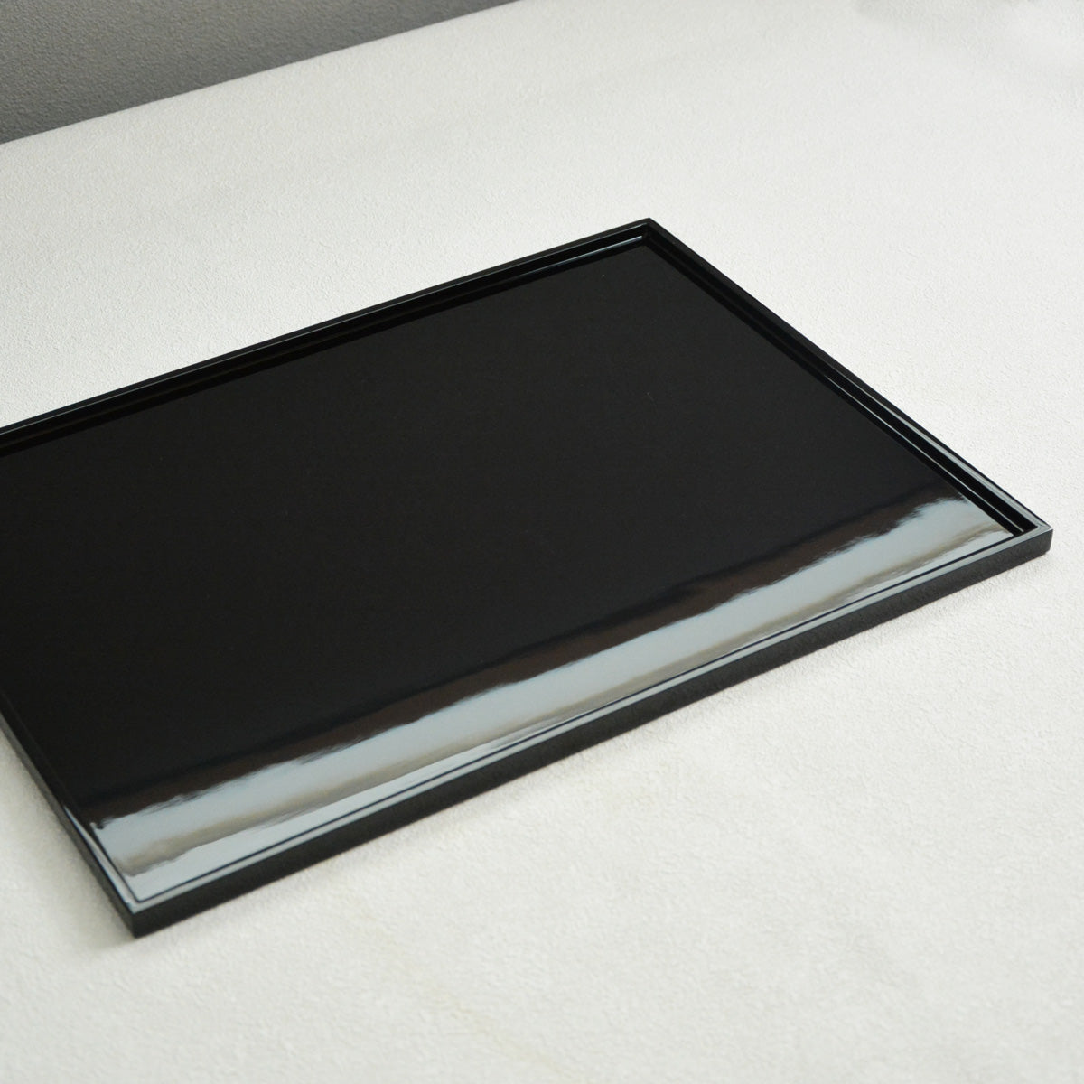 Handmade, easy-to-use, and stylish black lacquer tray for serving dishes. In Japan, trays are often used in place of table mats, placed beneath dishes to elevate presentation. Easy to clean and beautifully simple, they bring a refined touch to any meal.