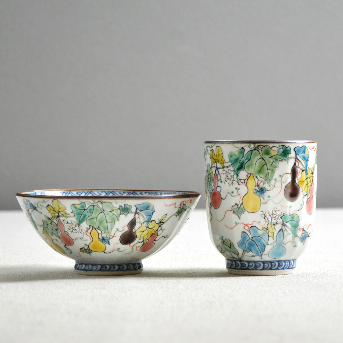 Handmade and hand-painted Kiyomizu porcelain tableware set.