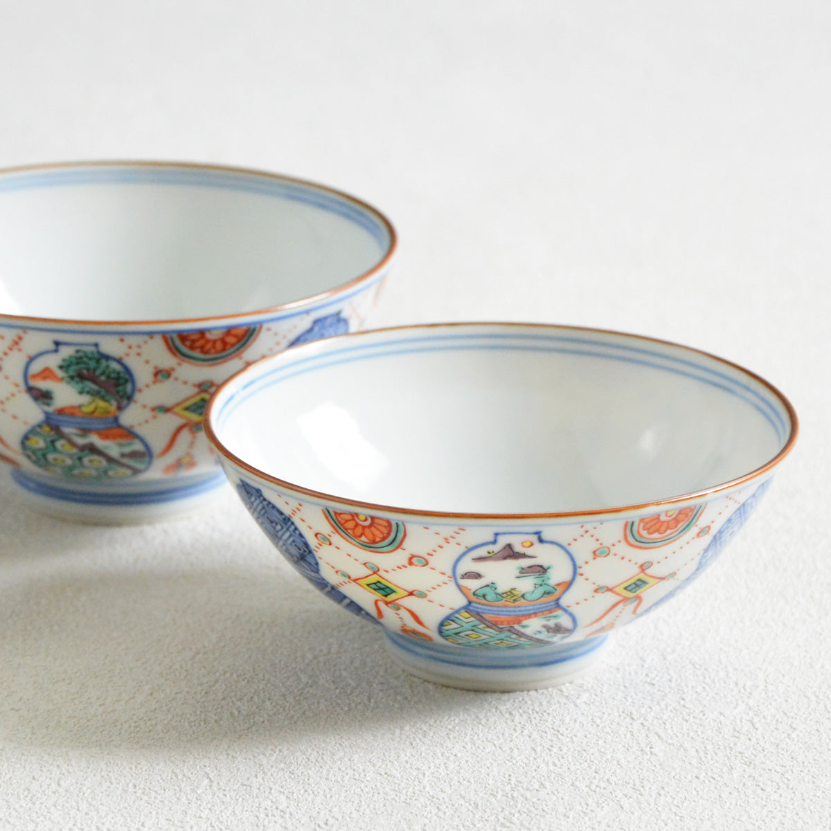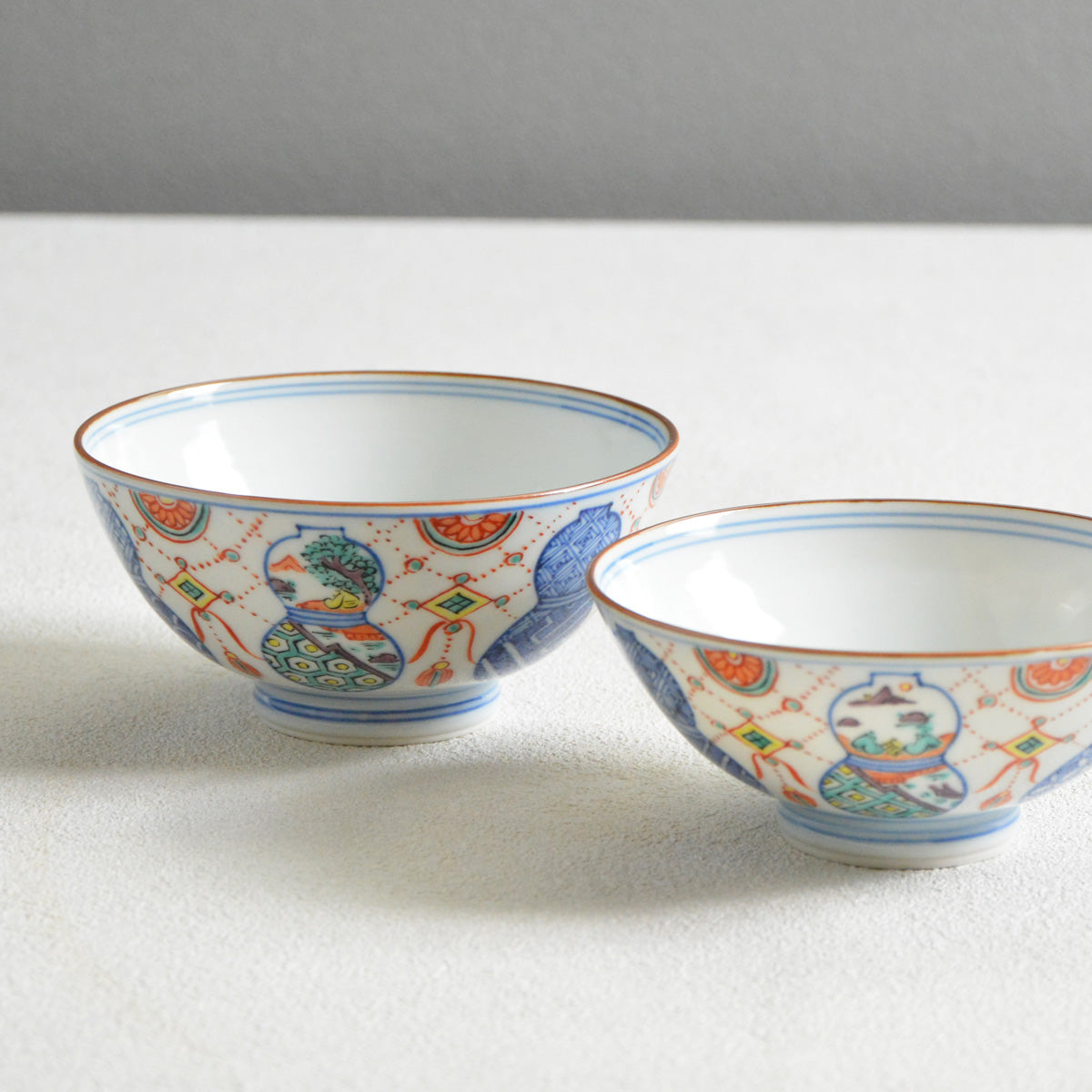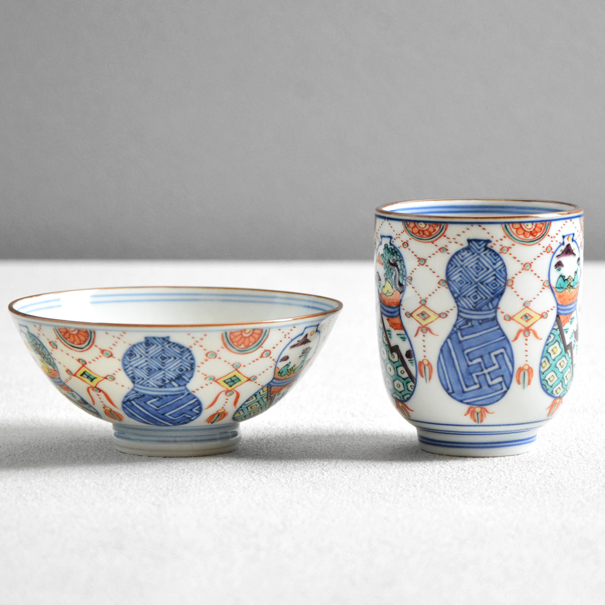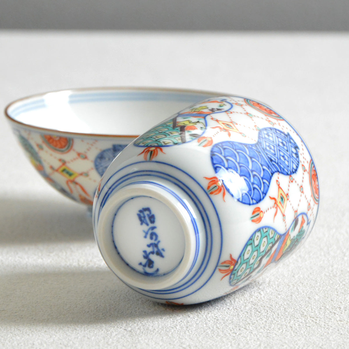 The delicately painted pattern combines two traditional Japanese motives: a "munyou" (gourd) and a youraku motif.