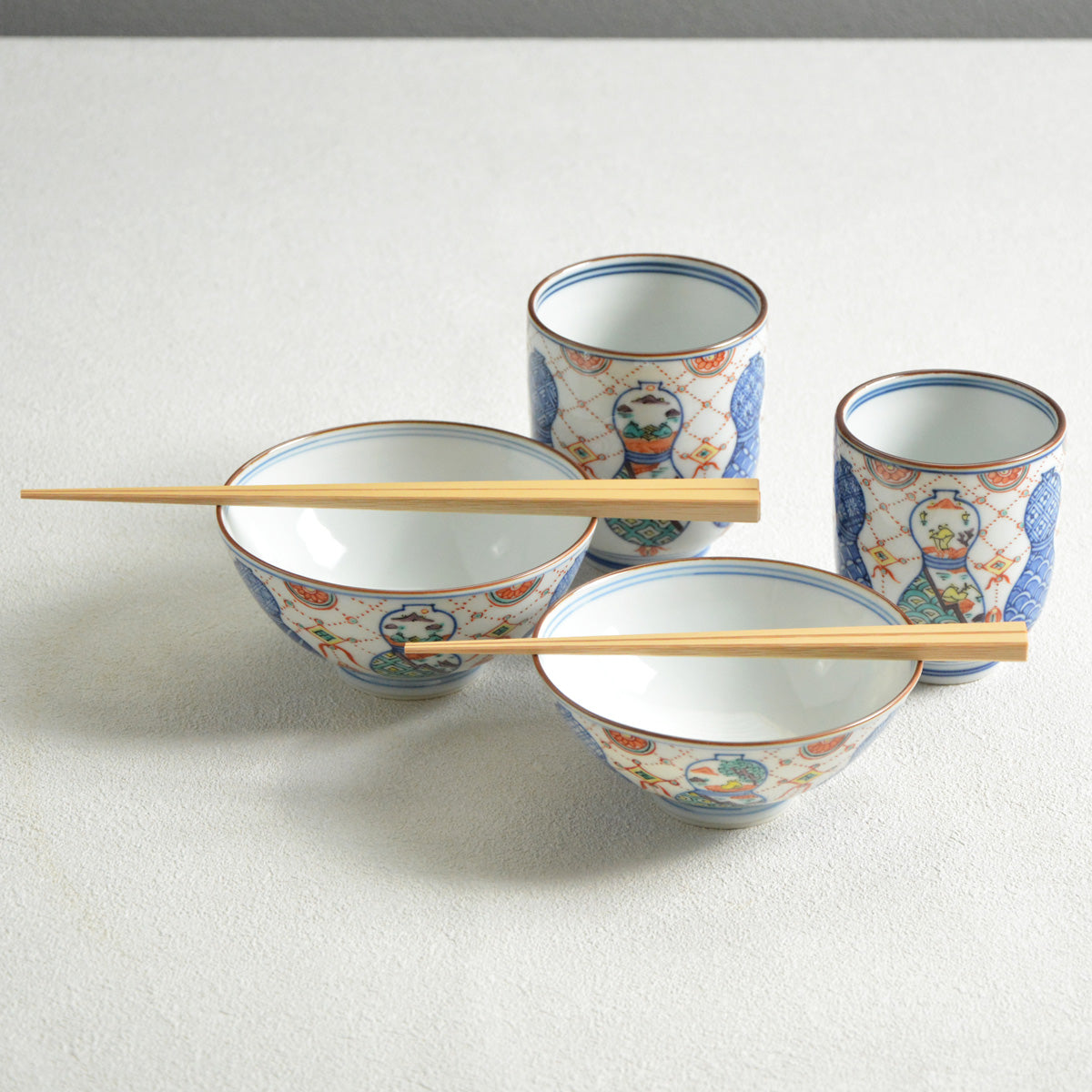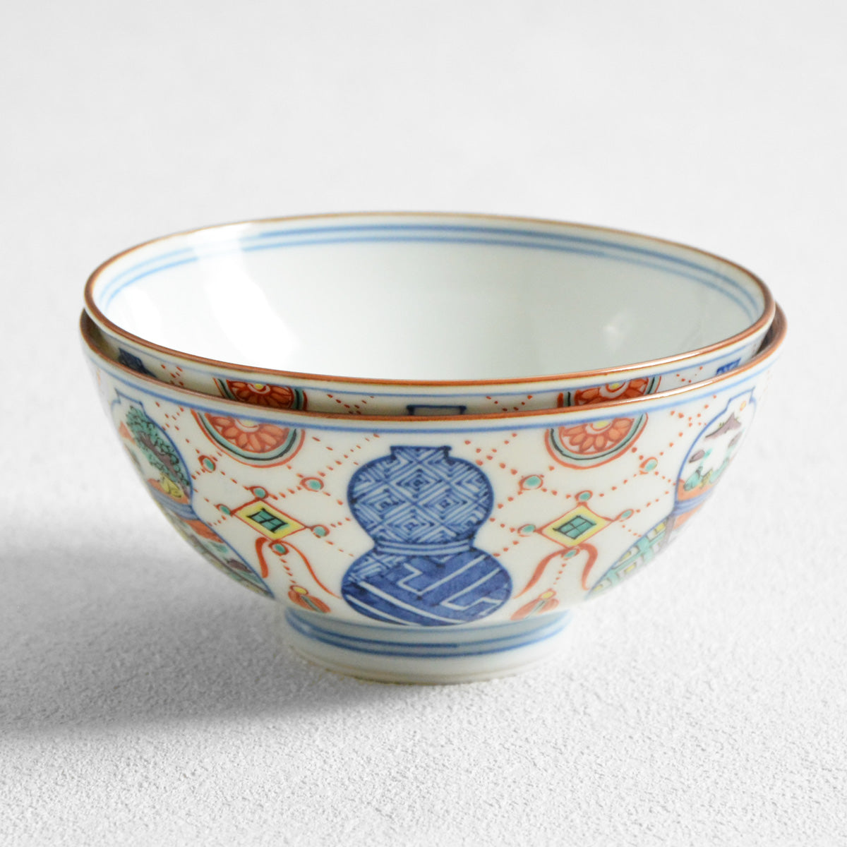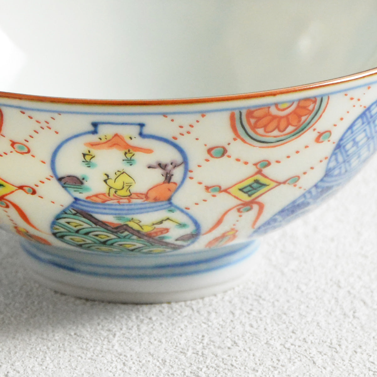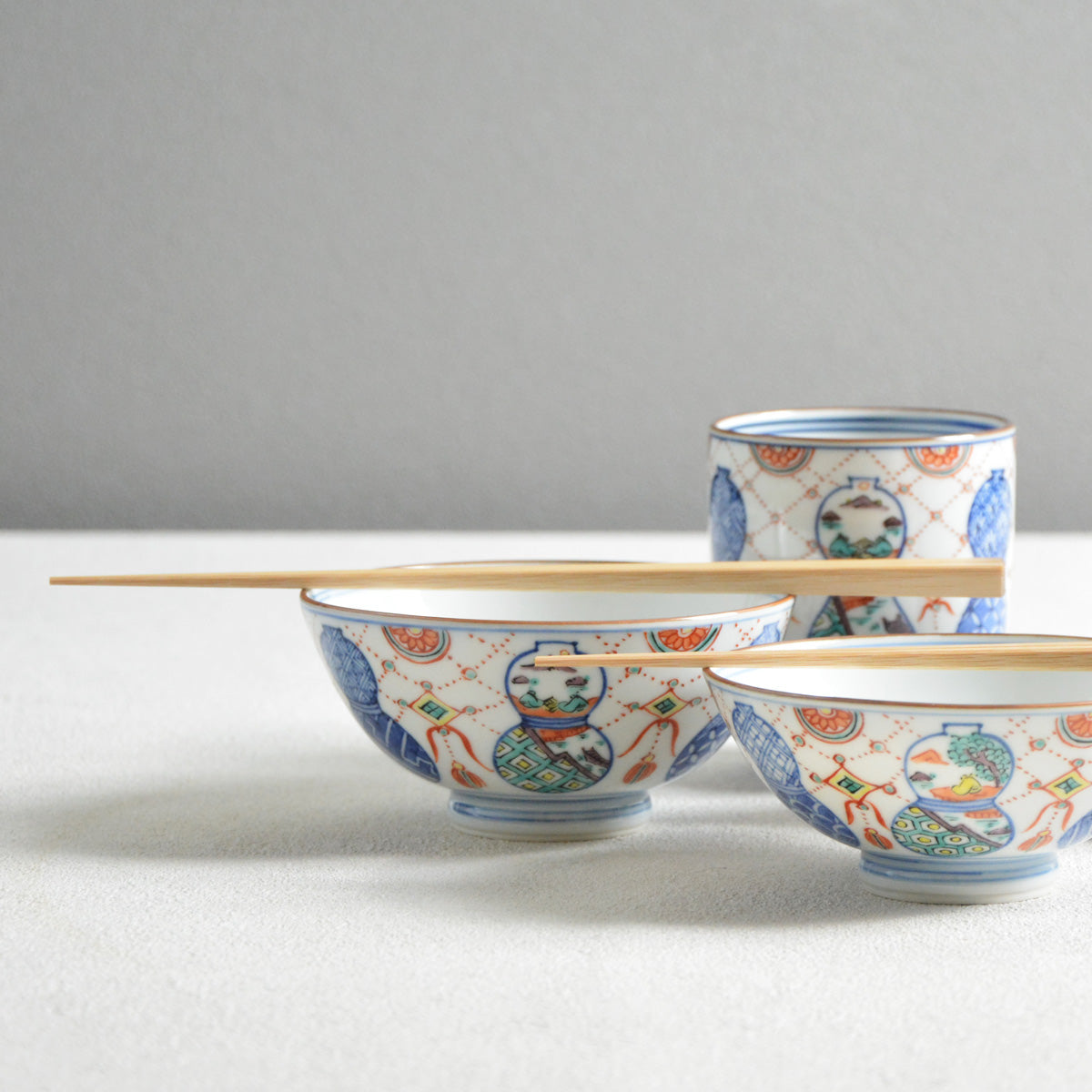 The delicately painted pattern combines two traditional Japanese motives: a "munyou" (gourd) and a youraku motif.